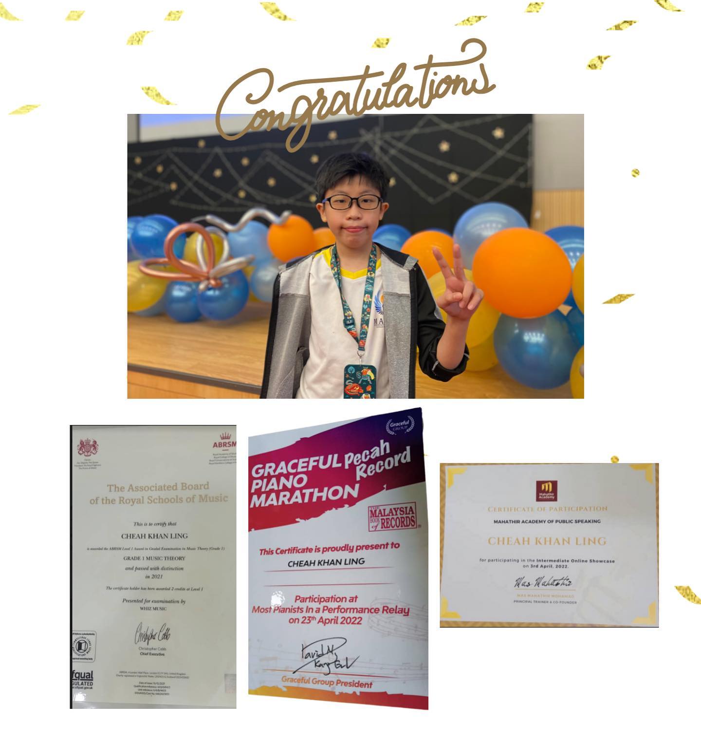 Congratulations to our student from Year 7, Cheah Khan Ling, for this commendable achievement throughout these two years.