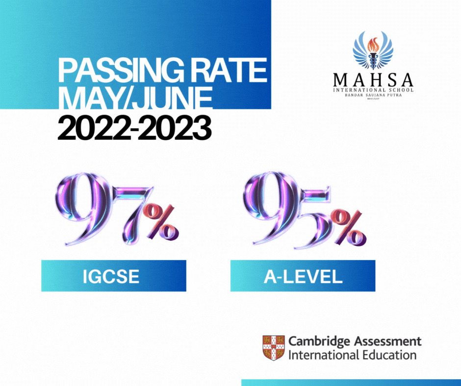 ๐โจ MAHSA International School Achieves Outstanding Results in Cambridge Exams! ๐ We're thrilled to announce our exceptional passing rates for IGCSE (97%) and A-Level (95%) in the May/June 2022-2023 session. ๐ Kudos to our dedicated students and educators for this remarkable achievement!